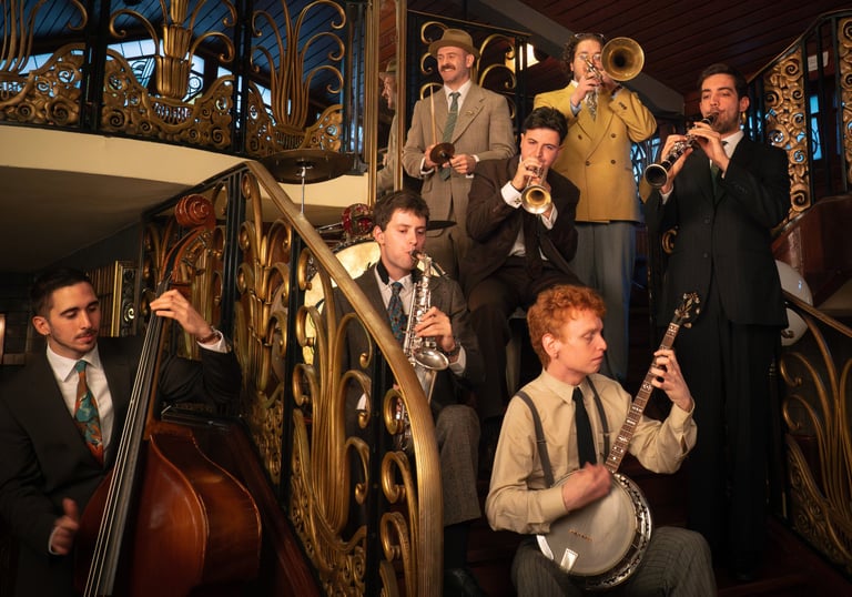 Weaned on classic records by King Oliver, Jelly Roll Morton, Louis Armstrong, and others, The Fried Seven bring a youthful, virtuosic twist to their music-making that makes it all the more engaging and authentic.